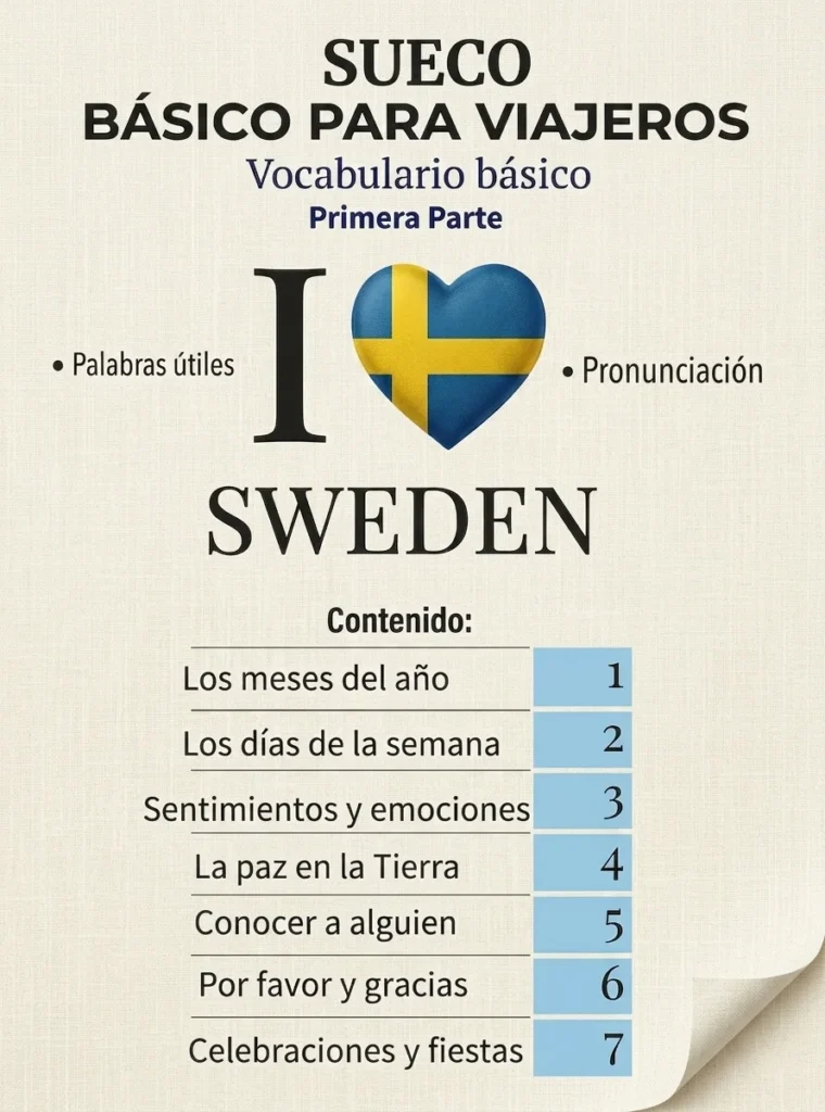 Vocabulario Sueco para principiantes ¡Embárcate en una aventura lingüística hacia el corazón de Escandinavia! Este curso está diseñado para el viajero moderno que desea conectar de manera más genuina con